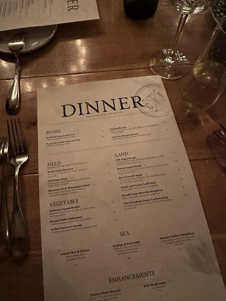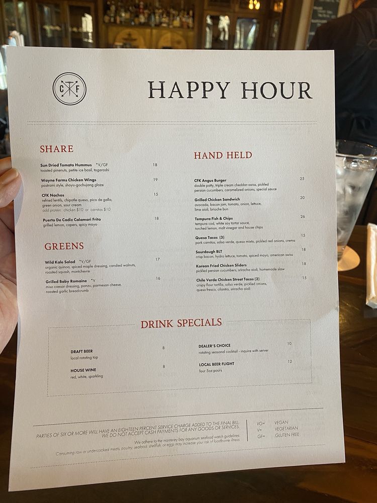 The menu showcases a diverse array of flavors. Start with the Roasted Garlic and Smoked Blueberry Hummus, a stunning blend of textures and tastes, perfect for sharing. For a satisfying entrée, try the CFK Angus Burger or indulge in the Seared Diver Scallops—each plate a testament to culinary artistry.